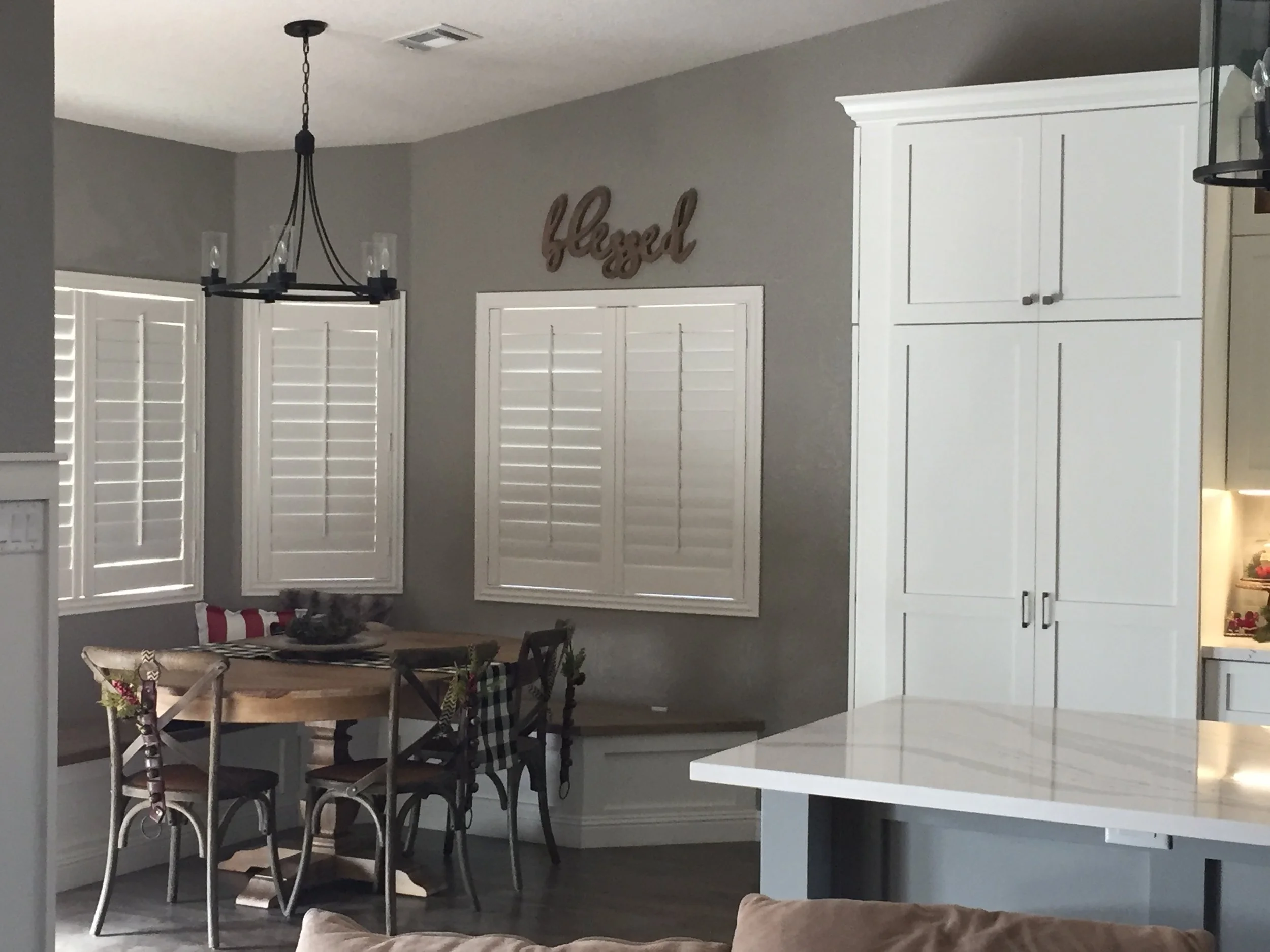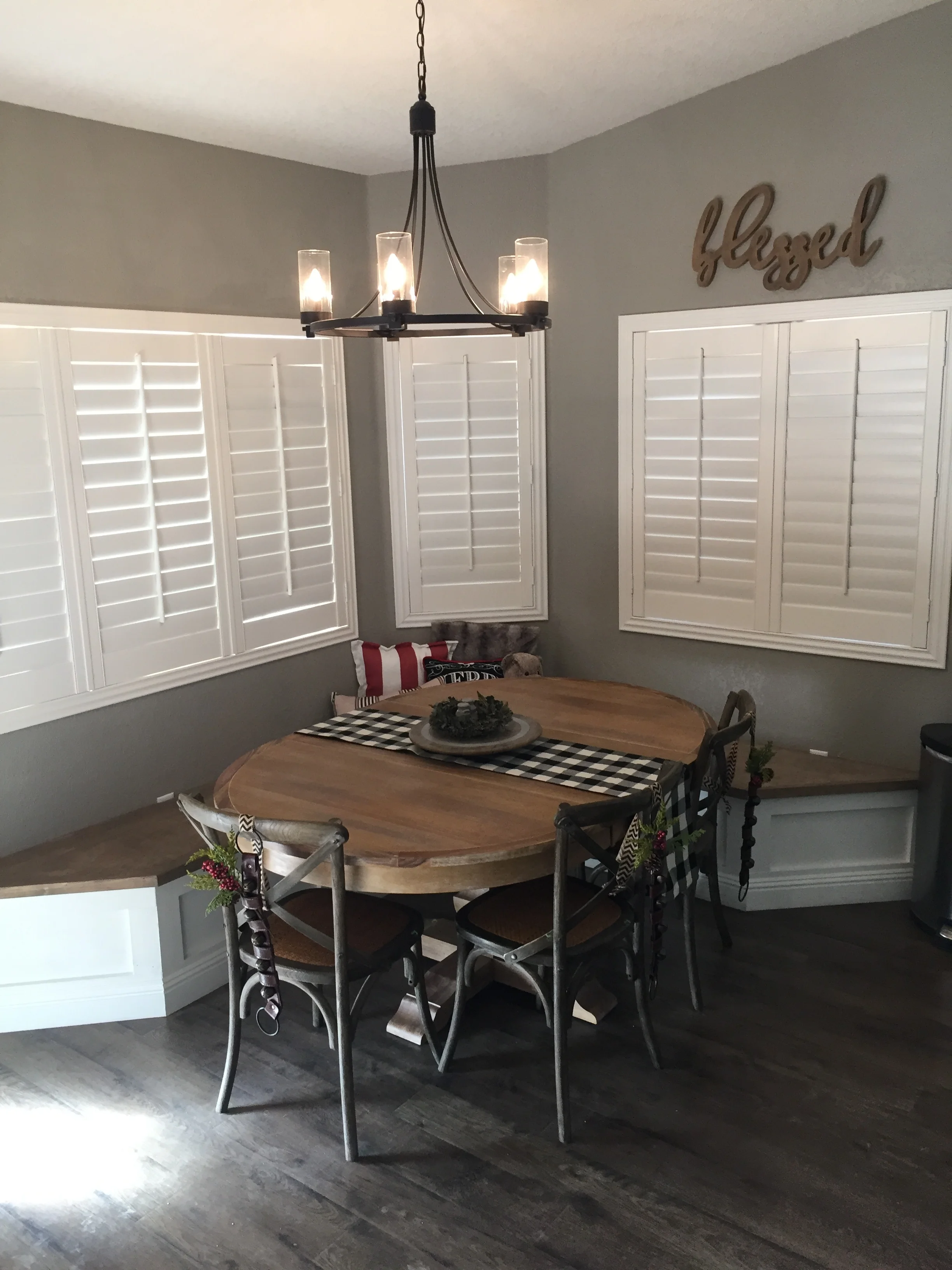 Drapes, bamboo shades, and rustic decor makes this home officially revamped and upgraded. Just look from where we started to where we ended up:
