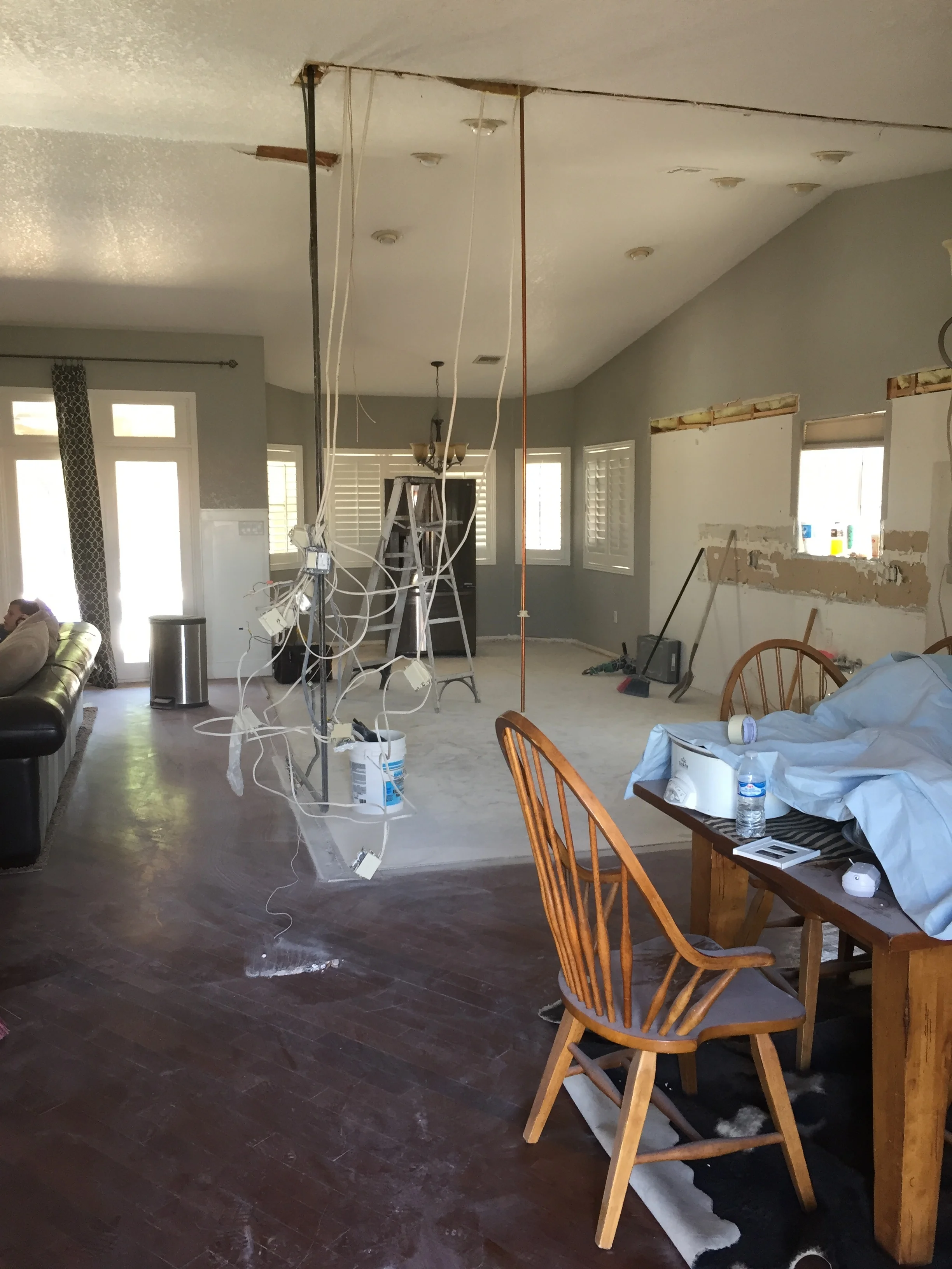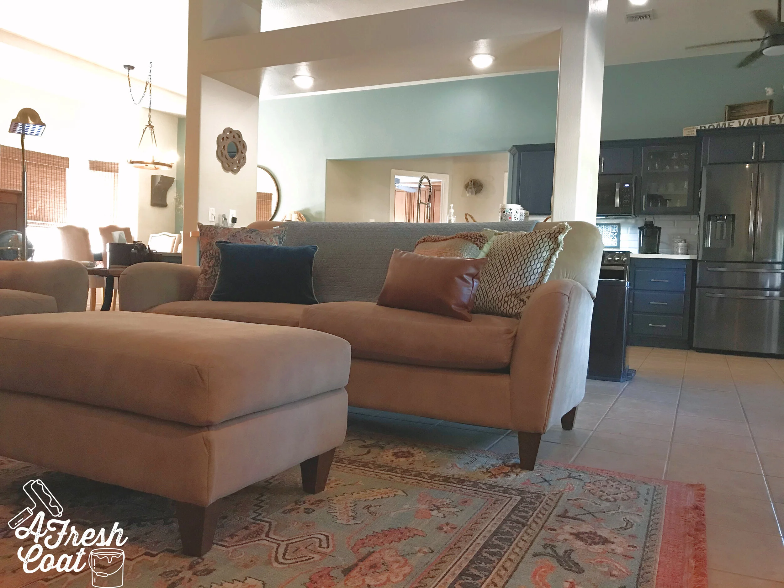 Such is the case with this total great room reno. My client fell in love with the kitchen featured on the television show, Rizzoli & Isles. So much so that we researched the paint colors in an effort to get the same look. Thing is? These rooms boast totally different building styles. Here in AZ, we tend to have numerous nooks and crannies, soffits, and structures indicative of a Southwest vibe. However, the kitchen featured on this popular television show did not—so in an effort to blend the two, here is what we came up with.